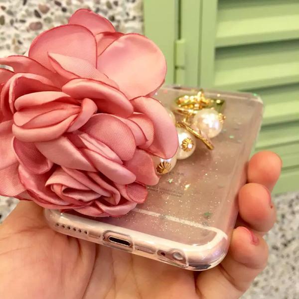 Diy Soft TPU Pink&Blue Pearls Fancy Chain Cell Phone Case Back Cover For iPhone 6 6s Plus